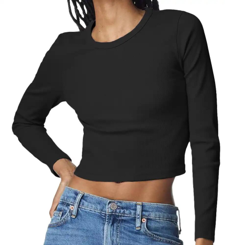6.5oz Women's 96/4 Cotton/Spandex Baby Rib Long Sleeve Cropped Tee