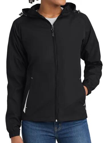 100% Polyester Ladies Colorblock Hooded Raglan Jacket