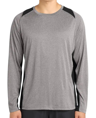 3.8oz 100% Polyester Long Sleeve Heather Colorblock Contender Tee